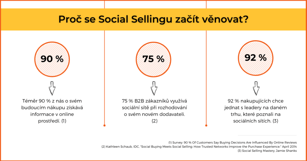 - Přes 90 % B2B zákazníků si o svém budoucím nákupu získává informace v online prostředí. (Zdroj: 38 Social Selling Statistics You Need to Know for 2021 (superoffice.com))