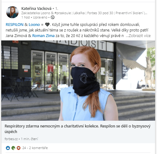 Kromě toho, že ukazujeme, že školíme, se snažíme ukázat i to, “jak” školíme. Jednou z předností Loono je srozumitelná, pozitivní a nezastrašující komunikace, kterou jsou naše workshopy proslulé. Nechceme návštěvníky zahlcovat složitými čísly a informacemi, ale naopak jim chceme laickou formou vysvětlit, jak se správně starat o své zdraví. Stejně tak přistupujeme k našim sociálním sítím, včetně LinkedInu. Zatím se nám to daří a naše síť tak má skvělý přehled o širokém záběru našich aktivity. Díky tomu se nám lépe navazuje komunikace a spolupráce. Stejně tak i my díky LinkedIn víme, co některé společnosti aktuálně trápí a jak bychom jim mohli být my nápomocní.