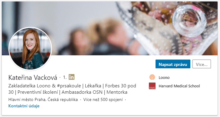 Nemohu říci denní, ale spíše týdenní, aktivní bývám v úterý a čtvrtek. Pravidelně postuji edukační obsah, úspěchy Loono či tipy na čtení a poslech. K tomu přidávám i novinky z oboru zdravotnictví či fotky ze setkání žen zakladatelek, které pořádám. Vše se pak točí kolem tří témat: zdraví, female empowerment a podnikání. I z workshopu FUTURE SALES. totiž vím, že je důležitá konzistence a pravidelnost. V dosahu příspěvků pak vidím velký posun i díky tomu, že jsem díky radám kluků přestala sdílet obsah ostatních a opravdu tvořím obsah svůj, což LinkedIn favorizuje.