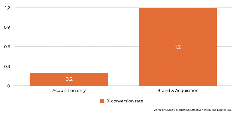 Neznamená to ovšem, že byste se na lead generation a jiné krátkodobé aktivity měli úplně vykašlat. Podle studií se ukazuje, že ideální poměr je 60/40 – 60 % branding, 40 % přímá reakce (např. lead generation). A stejně tak má smysl investovat jak do digitálního, tak i tradičního marketingu. Branding se vyplatí vložit do každé kampaně, například i do akviziční. Výsledky můžou být i několikanásobně lepší.