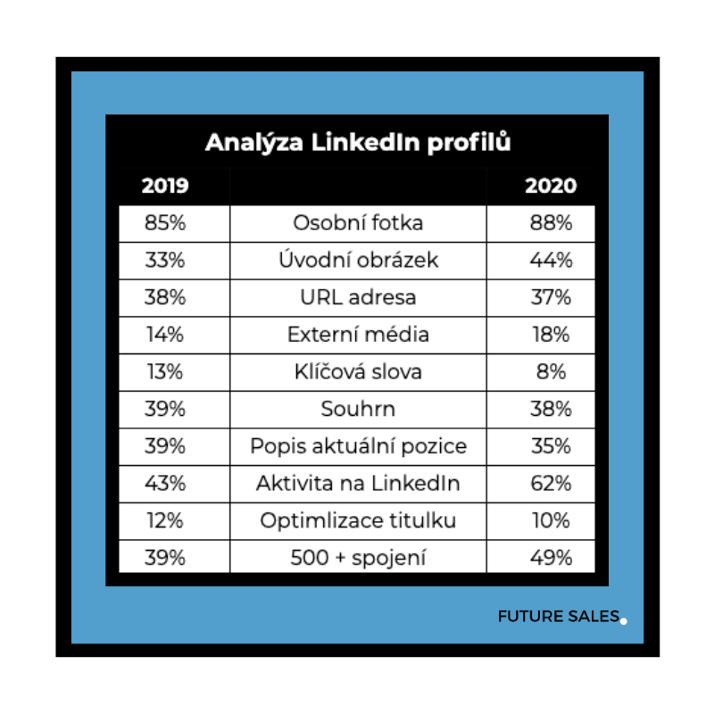 Zanalyzovali jsme asi 6 000 českých LinkedIn profilů za poslední dva roky. Proti roku 2019 se celková úroveň profilů zlepšila o 3 %, stále však většina uživatelů dělá následující chyby:
